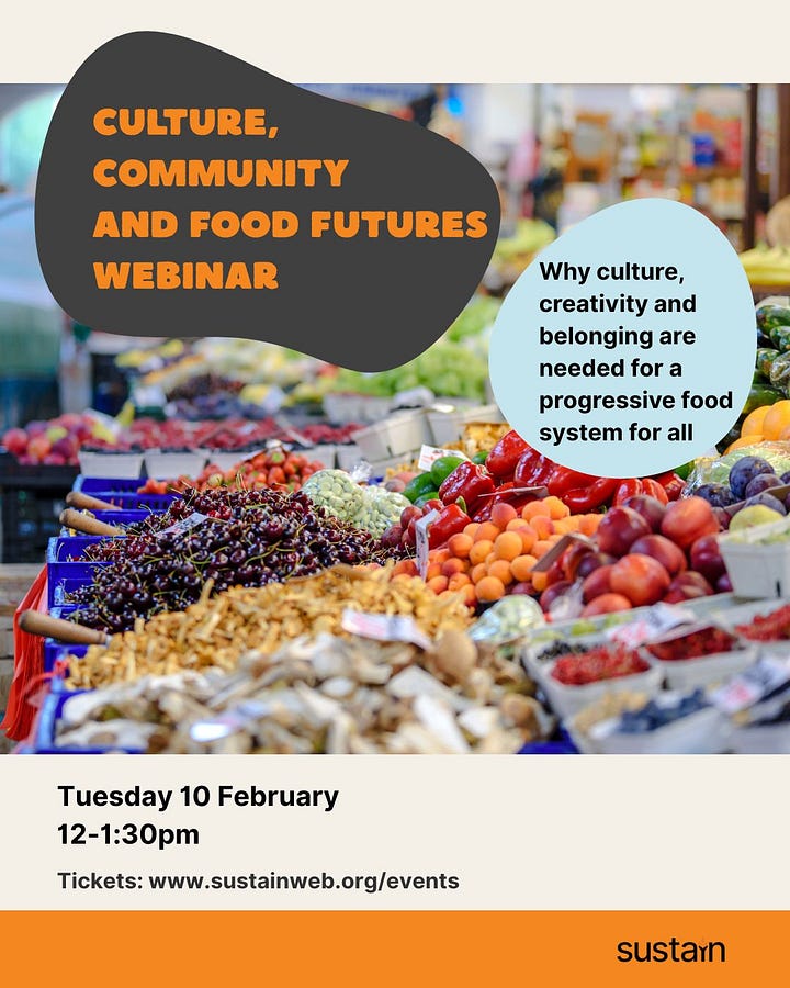 What knowledge, creativity and leadership do people from the global majority bring to food systems? I’m speaking at Sustain and Culture Roots Collectives free webinar with Betty Vandy of Liverpool’s Gather at the Table and Gnisha Bevan of Black Seeds Network on Tuesday 10th Feb, if you’re keen. Come along!