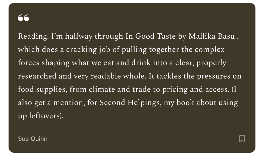 My new book In Good Taste: What Shapes What We Eat and Drink - And Why it Matters is out now and available on Waterstones, Amazon, bookshop.org and more.