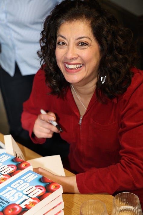 It was all too much for me to handle alone. Two of the three sponsored drinks and nibbles did not arrive on time. The teens were extra feral, fighting in the supermarket for last-minute items and then losing themselves in Covent Garden Market. My publicist Emma Marijewycz, publisher Kristin Jensen and daughter Maeve helped with set-up, as did my friend Chetna Makan, who arrived early to chaos.